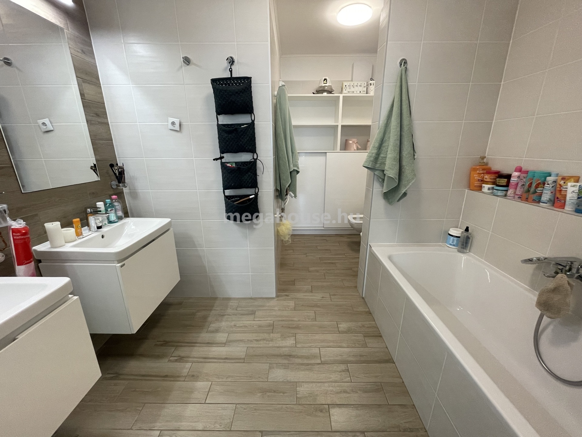 Csendes környezetben , nettó 98 nm-es, N+3 szobás, , 46 nm-es, saját napsütötte terasszal rendelkező, dupla fürdőszobás, kertkapcsolatos lakás 160 M Ft-ért eladó.