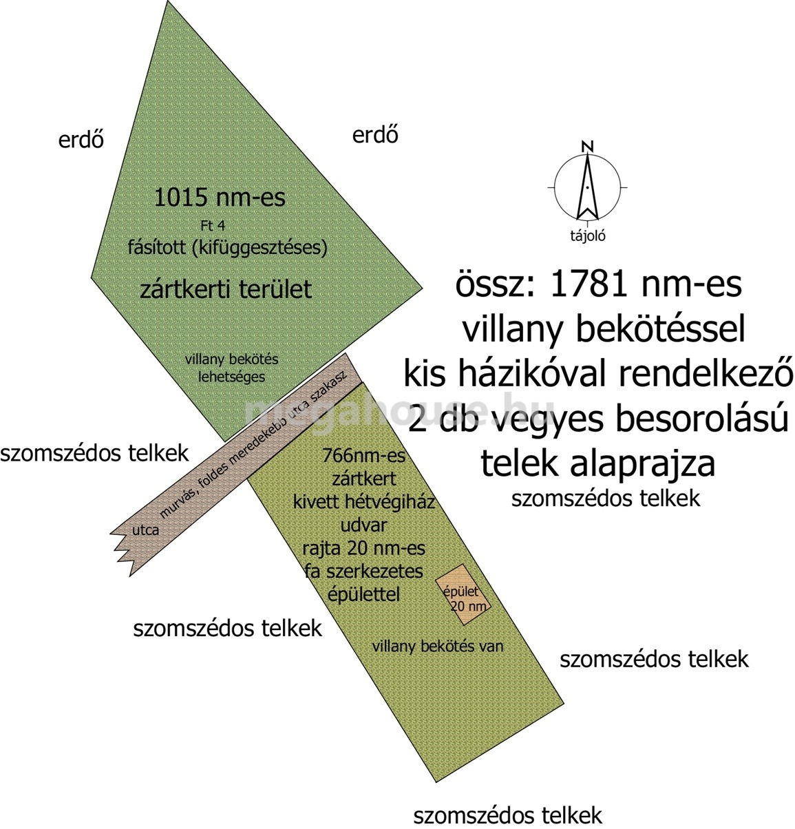 1781 m² területű, 2 kisebb (1015 és 766 nm) telekből álló ingatlan.