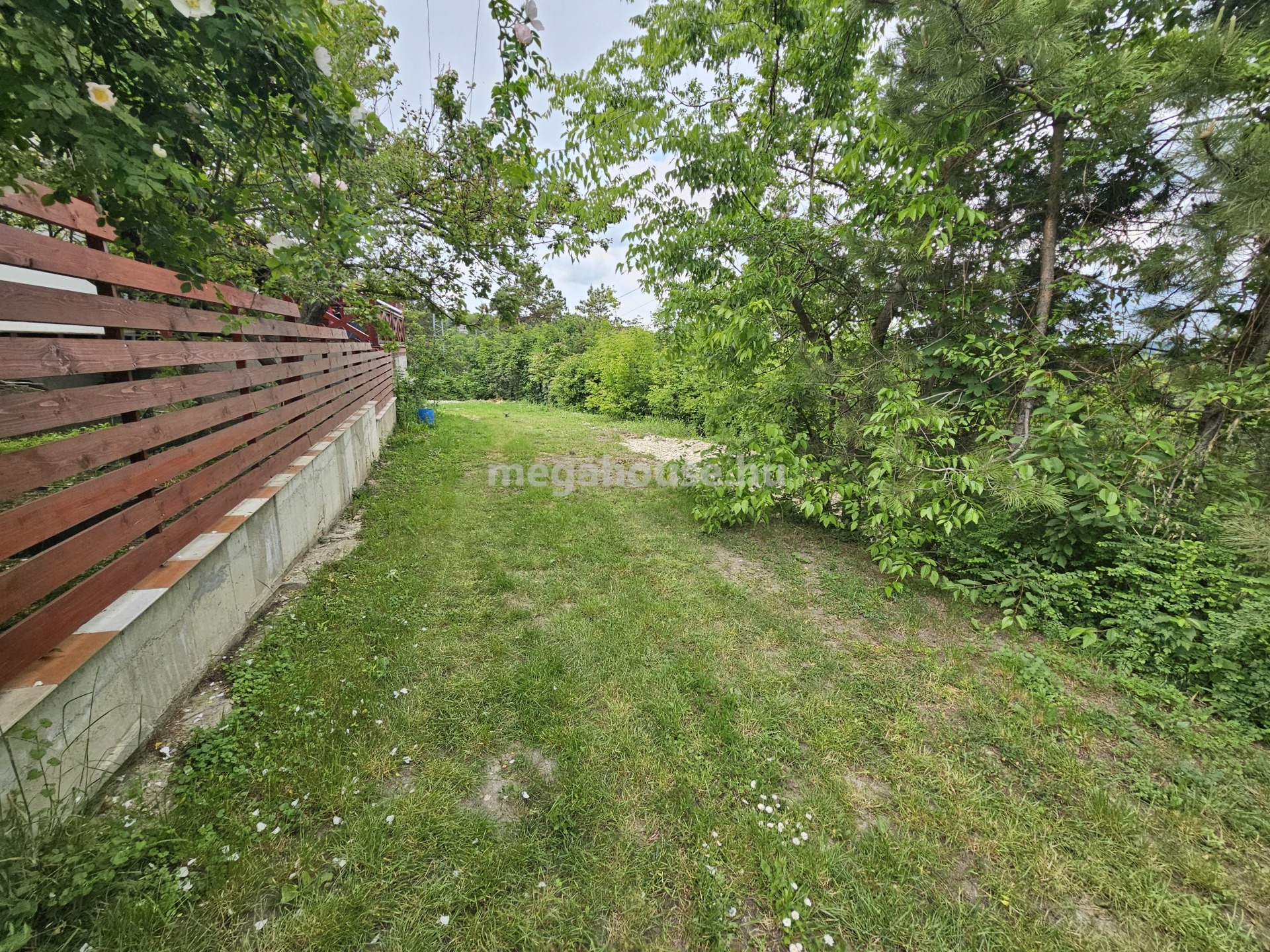 A telek lejtős, rézsűsítve van, a jelenlegi a növényzet gondozatlan, így rendberakást igényel.