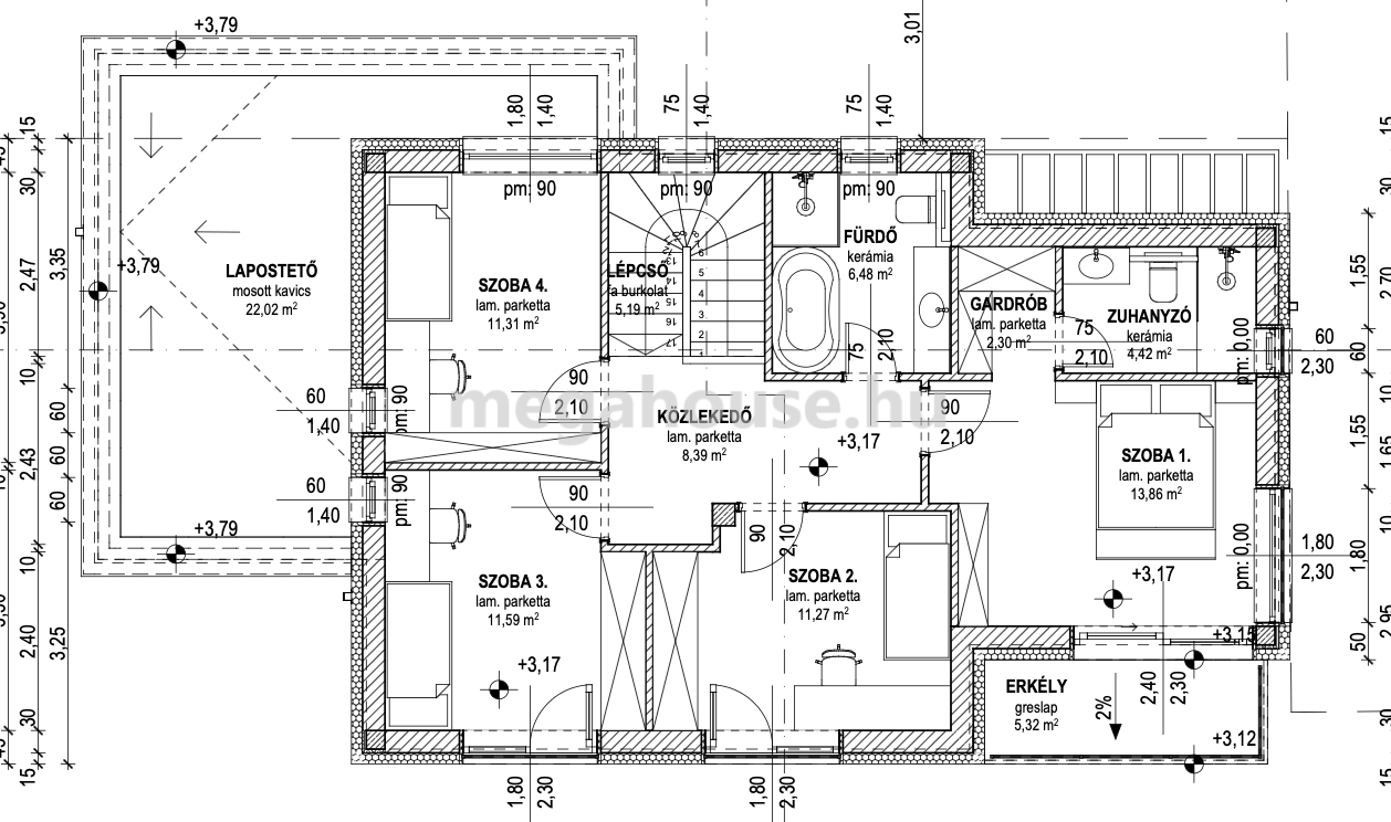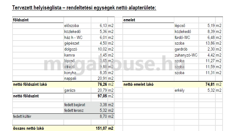 Az emelet alapterülete 76 nm + 5,3 nm erkély.