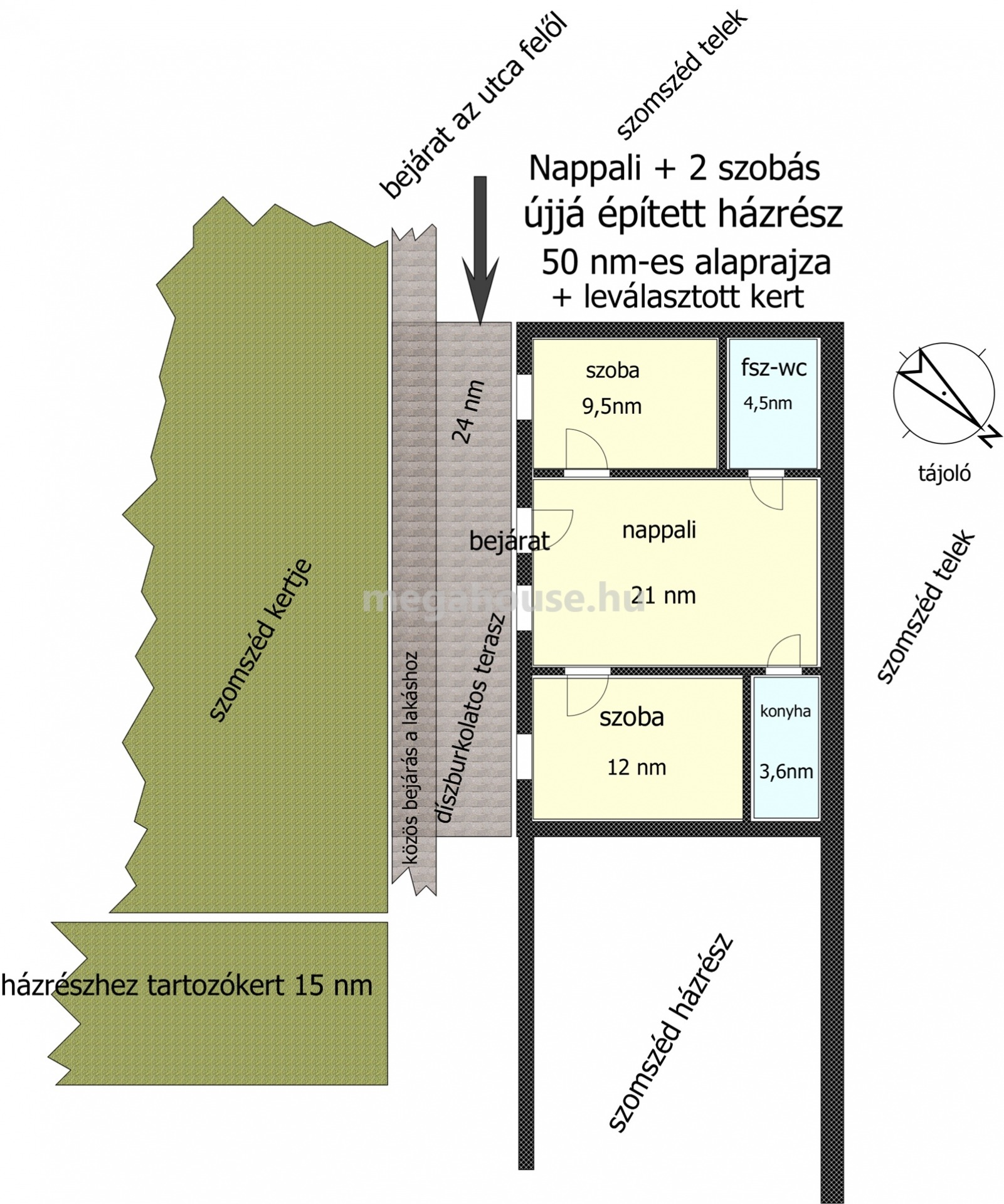 Kis ráfordítással, zöldellő kertecskét és egy praktikus tároló házikót valósíthat meg az ingatlanhoz tartozó,leválasztott kertrészen.