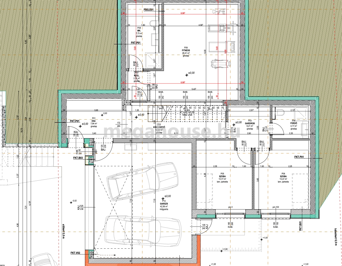 A közlekedőn tovább haladva két kényelmes méretű hálószobát, zuhanyzós fürdőszobát és praktikus gardrób helyiséget érhetünk el. Szintén az előszobából közelíthető meg egy közel 30 nm-es fitness terem is, melyhez külön zuhanyzós fürdőszobát terveztek.