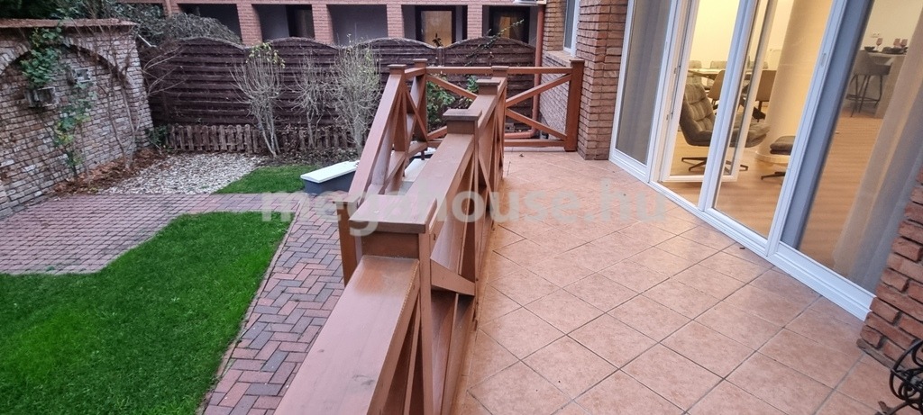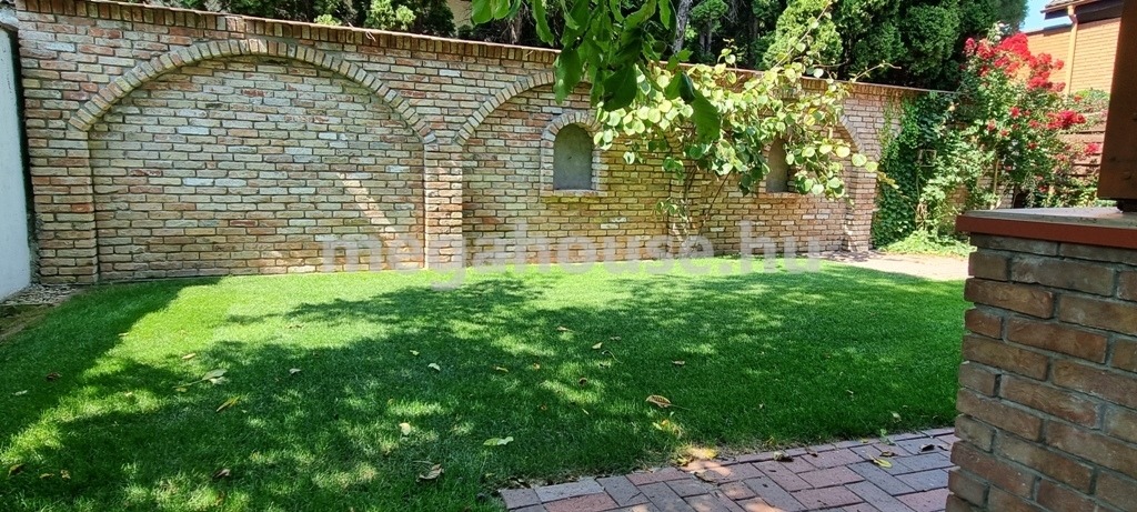 A szomszédoktól jól szeparált kert rendezett és automata öntözőrendszerrel kiépített és kerti vízfogyasztás mérővel.