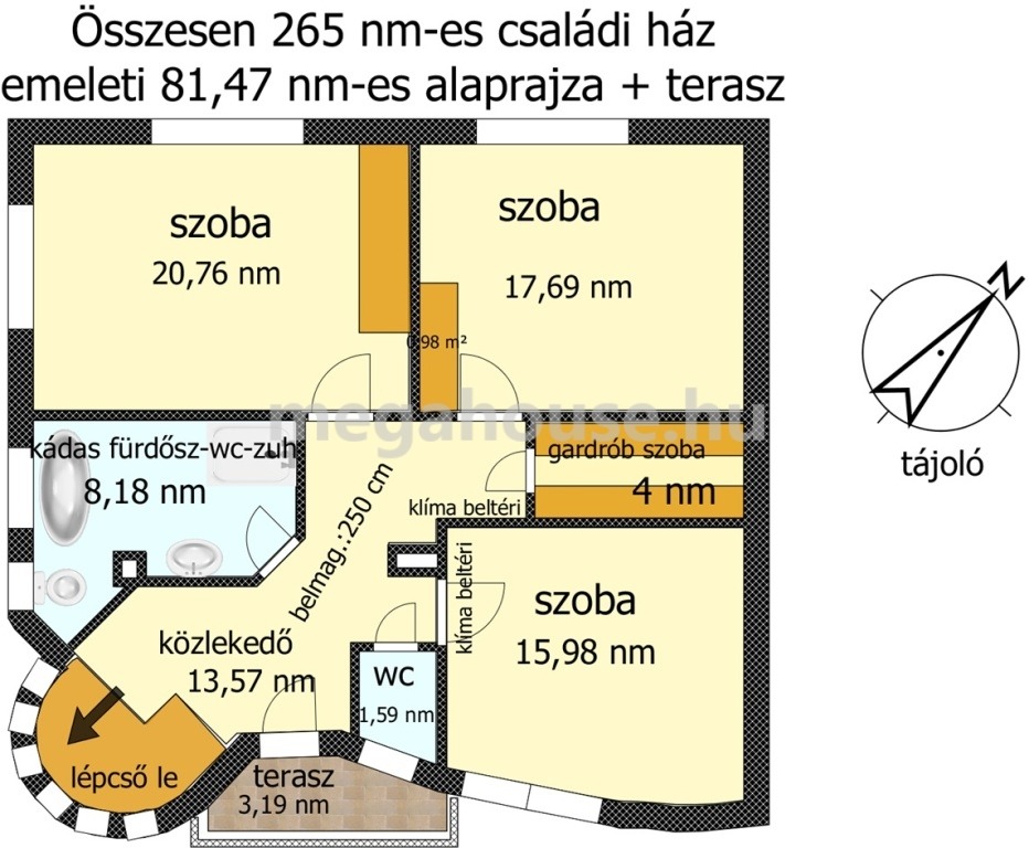 emelet: lakótér bruttó 81,47 nm + 3,19 nm terasz