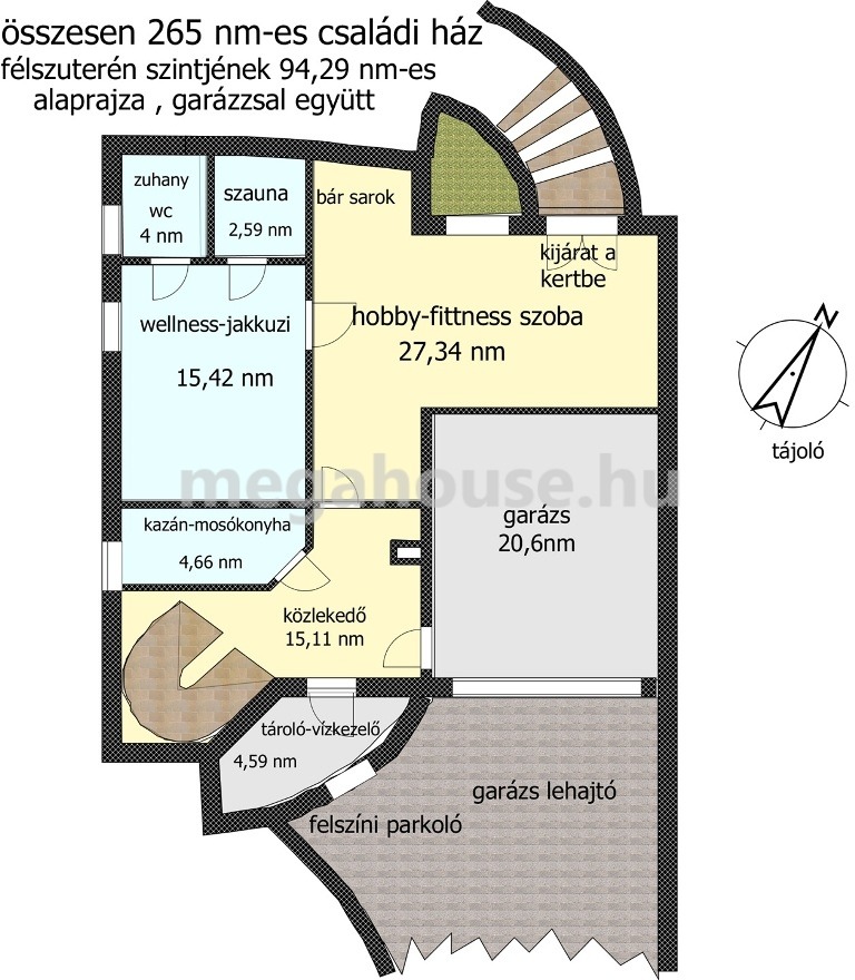 félszuterén szint: összesen 94,29 nm
