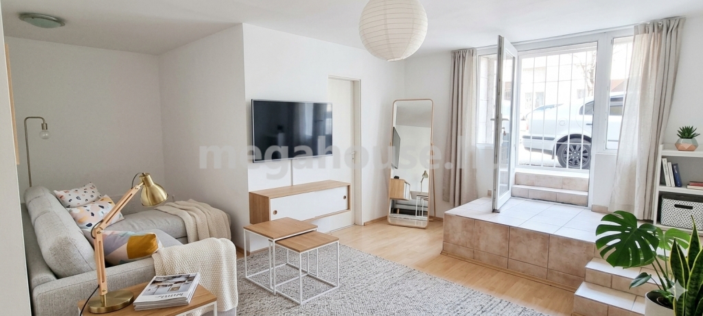Budapest IV. kerület városközpont vonzásában, kis lakásszámú társasház, gyorsan költözhető közvetlen utcafronti bejárattal rendelkező 43 nm-es jó állapotú másfél szobás félszuterén lakása Irodának, üzletnek, szolgáltatásnak, csak 34,9 M Ft-ért eladó!