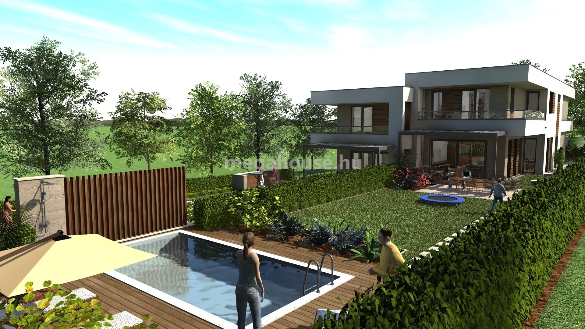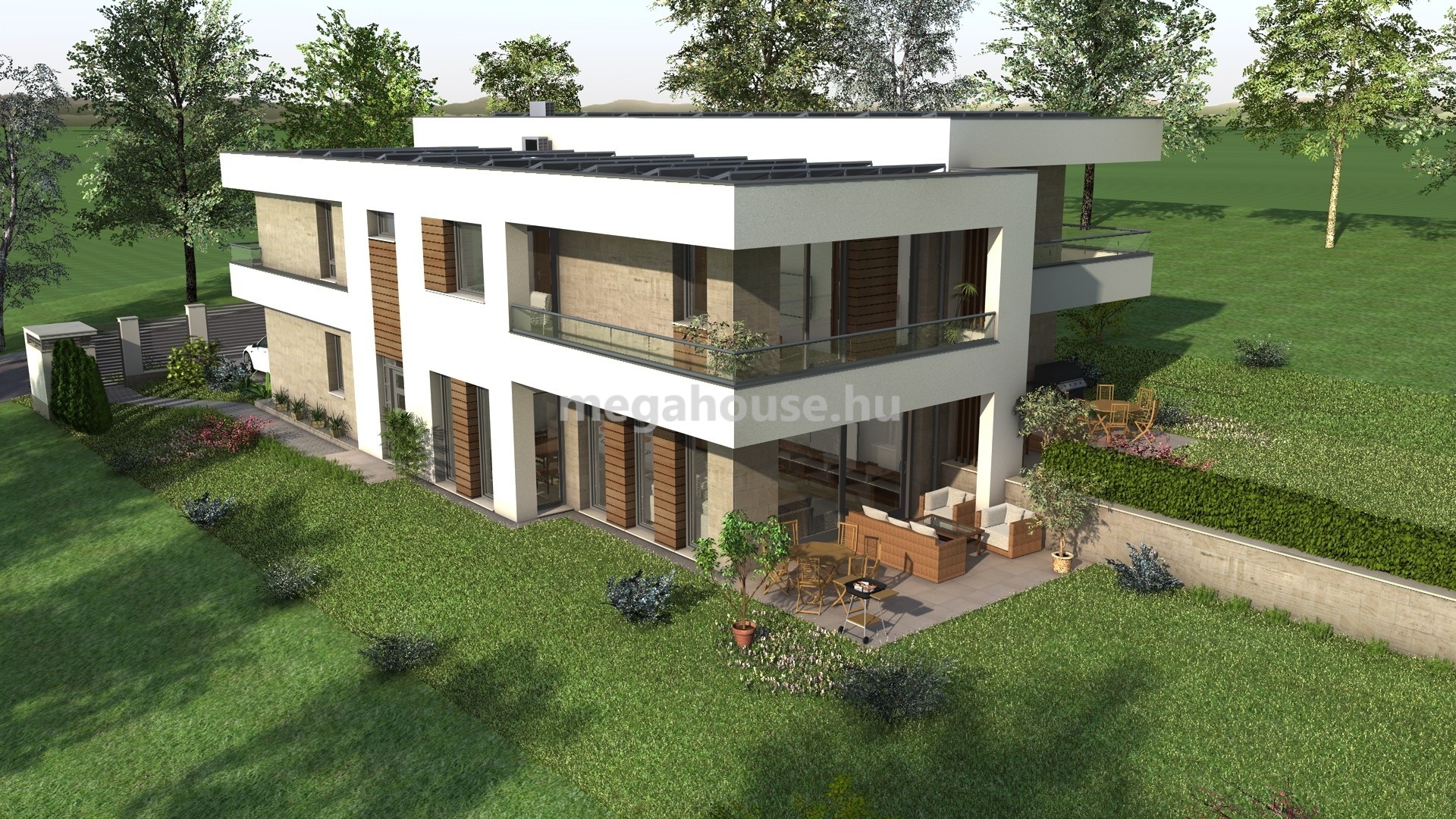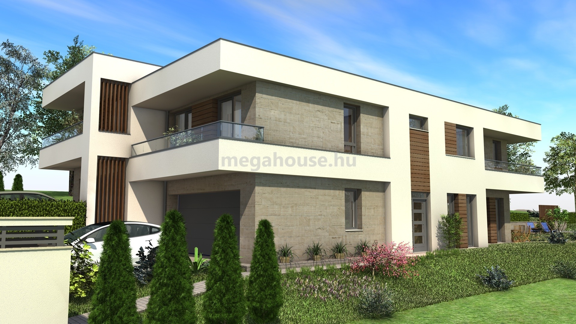 A mindösszesen 1100 nm-es kerttel rendelkező ikerház felek kisebb módosítással egybenyithatóakká válnak, így kényelmes otthon lehet akár több generáció számára, megőrizve a magán szférát.