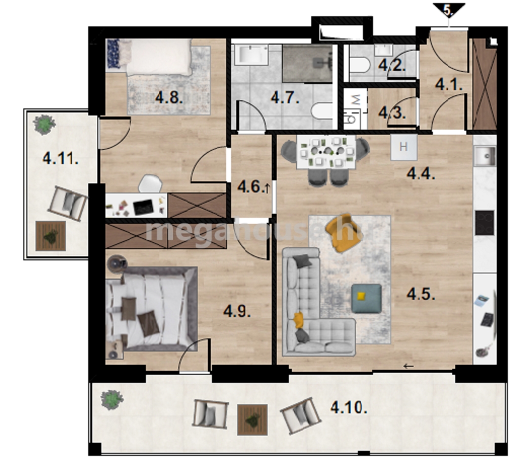 Projekt valóban egy MODERN, fenntartható otthon, amely a LEGÚJABB TECHNOLÓGIA és ENERGETIKAI megoldásokat ötvözi. Ez a 3 szobás lakás DÉLKELLETI tájolású, így a napfény reggeltől délutánig beragyogja a tereket. A lakás ideális választás, ha a napsütéses otthonokat és a saját kertet keresed. A lakás nappalija tágas és világos, két különálló hallóval, háztartás helységgel, fürdőszobával és külön mosdóval.