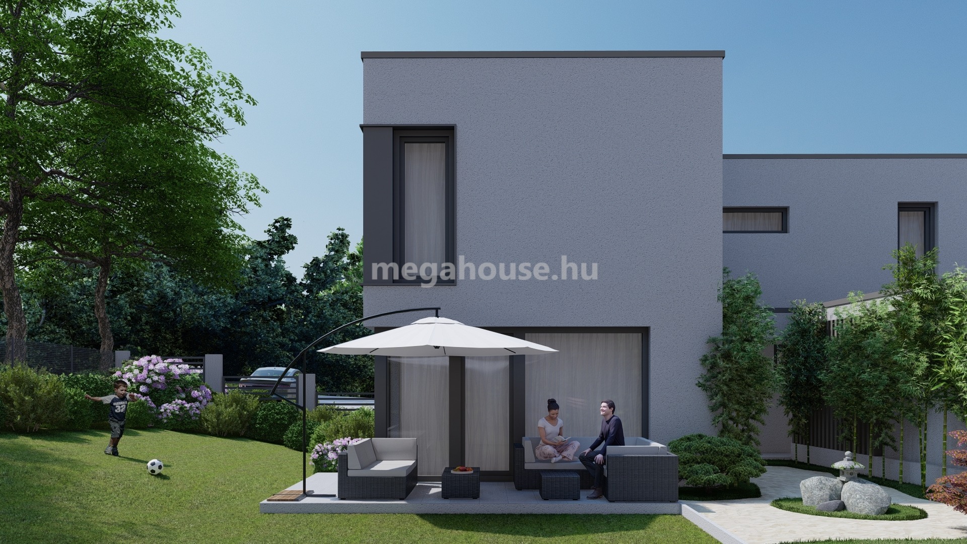 MŰSZAKI TARTALOM: Hőszivattyús fűtésrendszer padló és mennyezet hűtés-fűtés. Egyedi burkolat és szaniterválasztás. Elektromos redőnyök, riasztó előkészítés. Parkolás két gépkocsi részére: félig fedett 29 nm-es garázshelyen , ( 2x5 M Ft ) és saját tároló. ( + 3 M Ft) Az épület önálló, csupán a tároló és a fedett parkoló köti össze a másik épületrésszel.