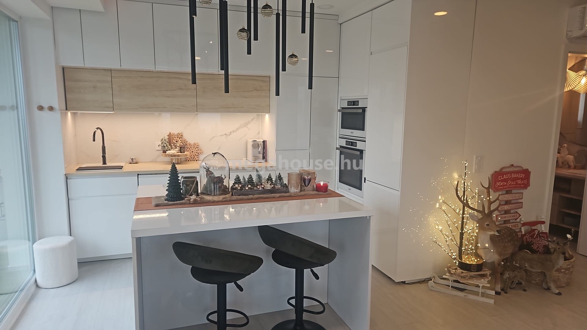 - konyha beépített hűtő-fagyasztó,mikró, sütővel és egy asztalos által készített konyha szigettel.