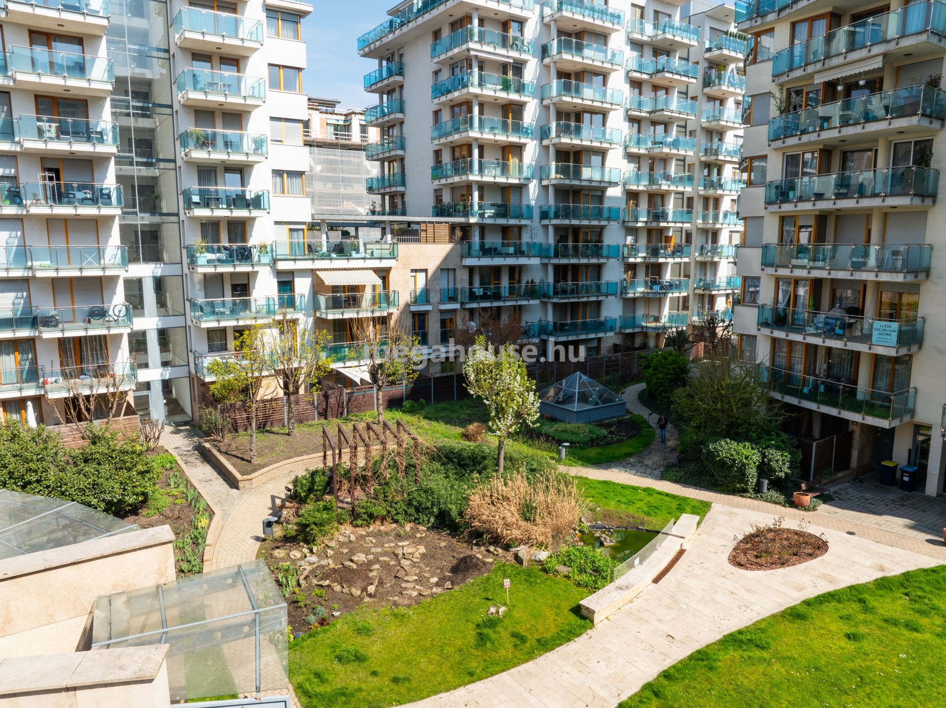 A társasház szépen ápolt belső kerttel, elegáns fogadótérrel és 0-24 órás portaszolgálattal áll a lakók rendelkezésére.