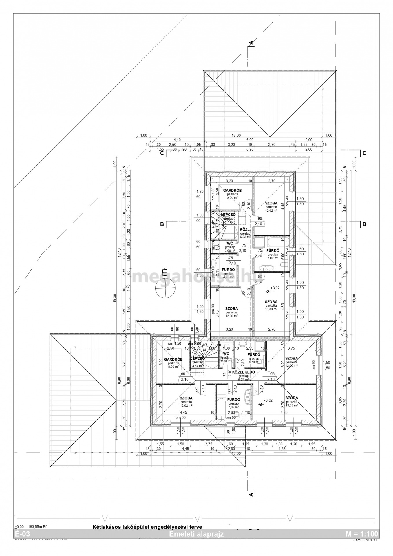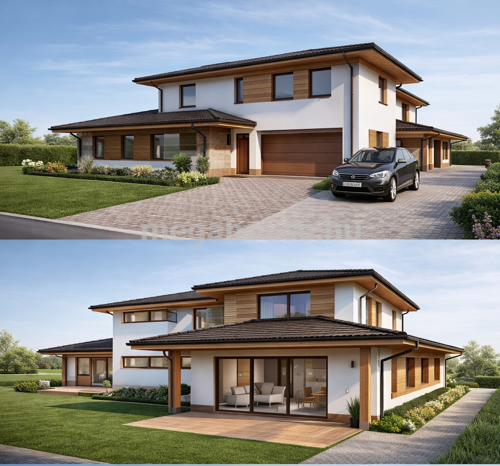 A tervek szerint nettó ~185 m²-es (garázzsal) ikerházak valósíthatók meg oldalanként, ideális családi otthon vagy befektetés céljára is.
