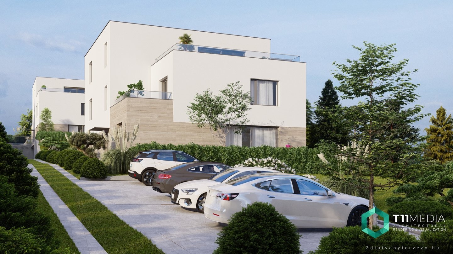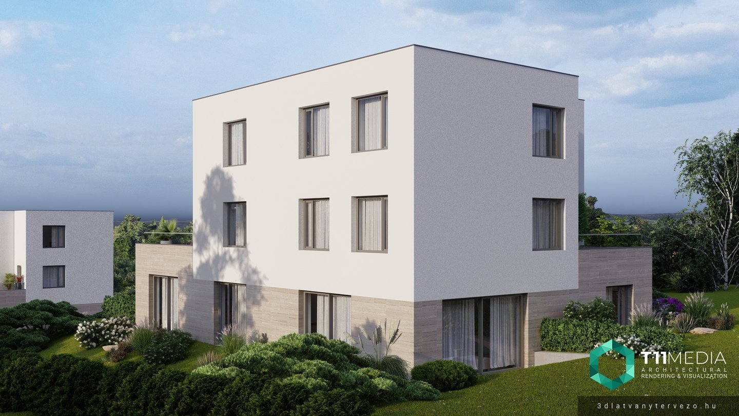 Madárhegyen, egyedülálló panorámával rendelkező projektben, két épület található 4-4 lakással, nagy méretű telken.