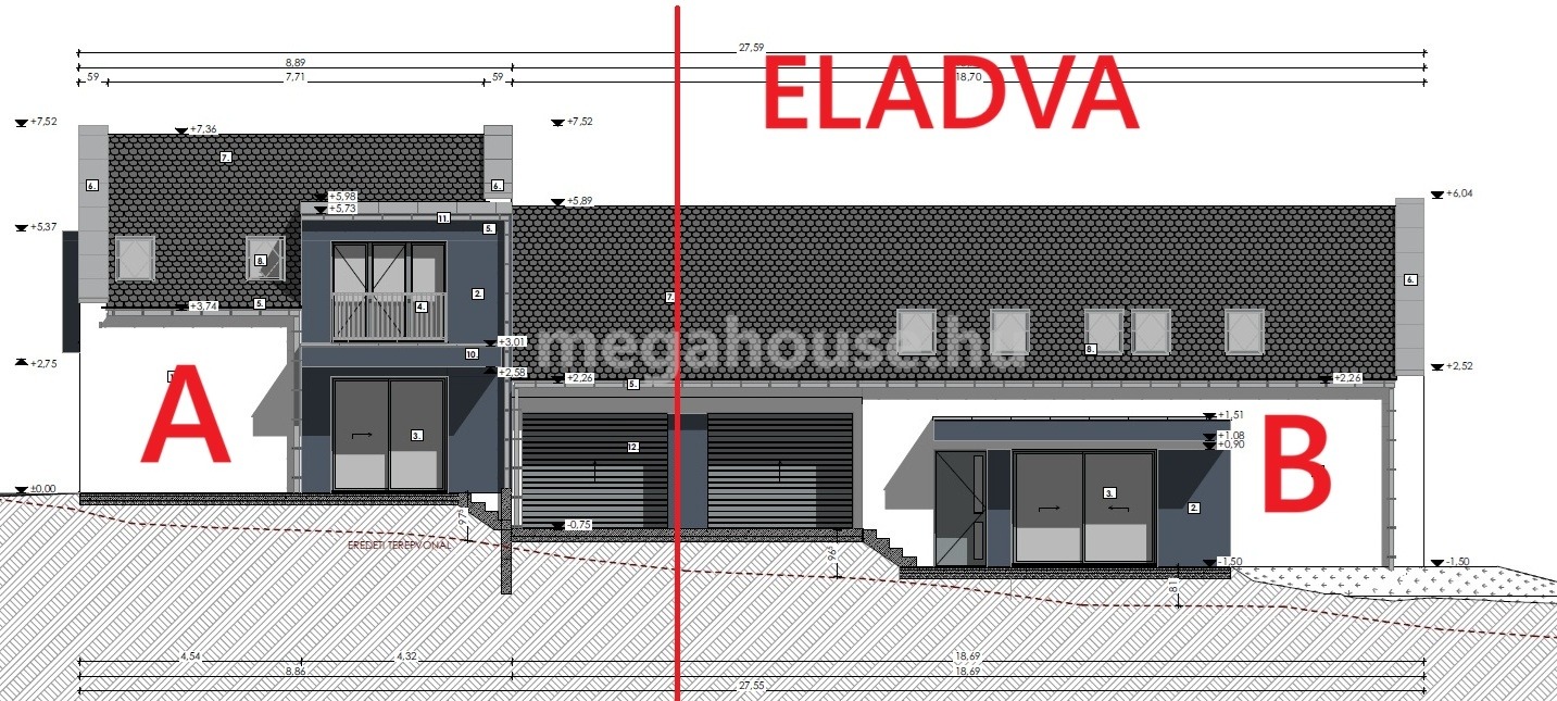 N + 3 SZOBÁS IKERHÁZGARÁZZSAL, ÉLHETŐ TERASSZAL