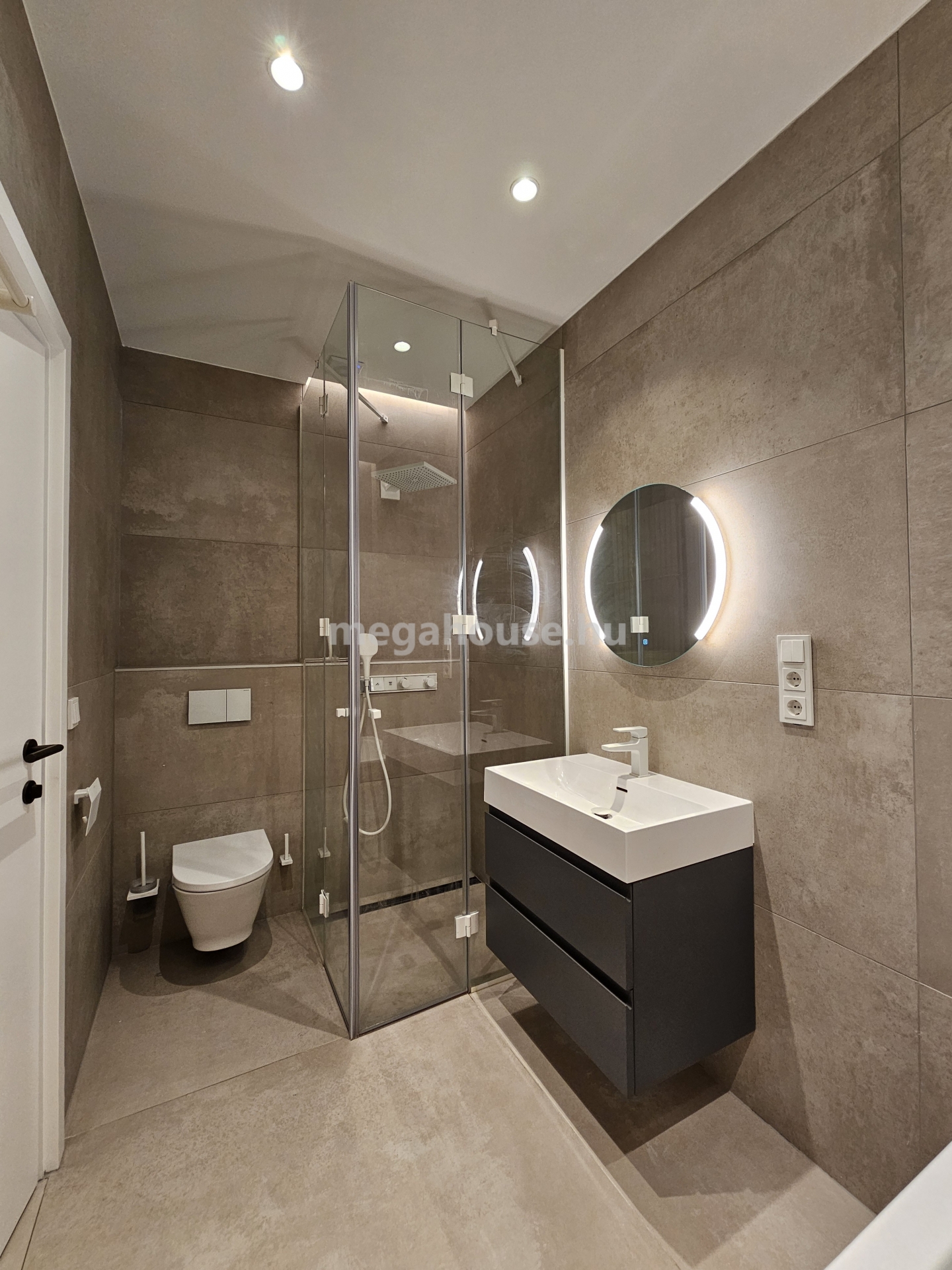 - Teljesen felszerelt fürdőszobák (zuhanykabin, kád, fürdőszobabútor, tükör, törölközőszárító)